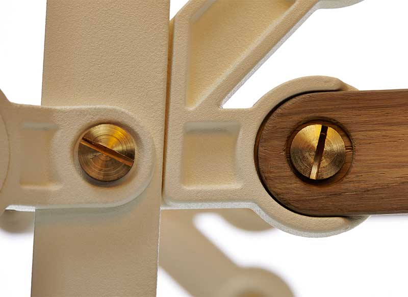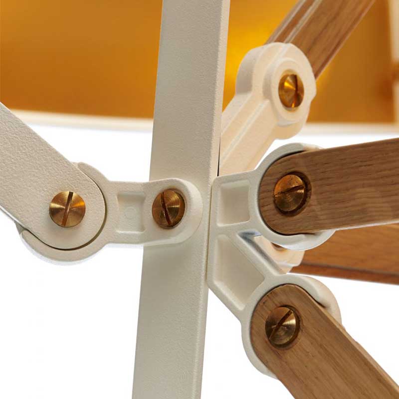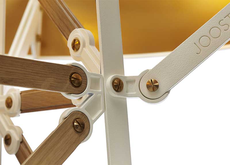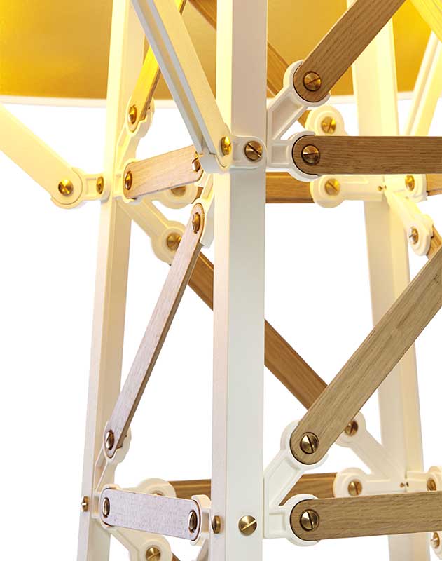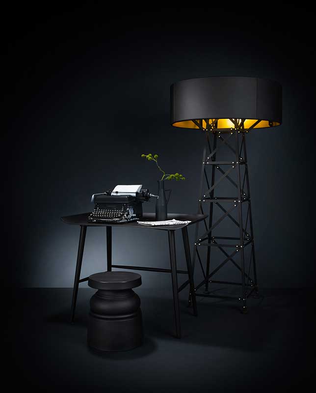 鉄塔のような建造物の構造美にインスパイアされたフロアランプです。無数のリベットがデザイン的なアクセントを与え、この照明にユニークな特徴をもたらしました。