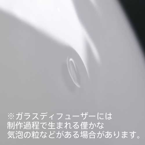 特徴的なベルのかたちのガラスディフューザーは、ひとつひとつマウスブローで制作されています。制作過程で生まれる僅かな気泡の粒など、手作りならではの風合いを残した仕上がりです。