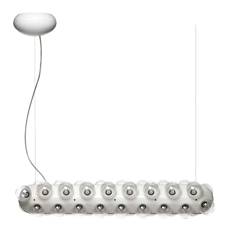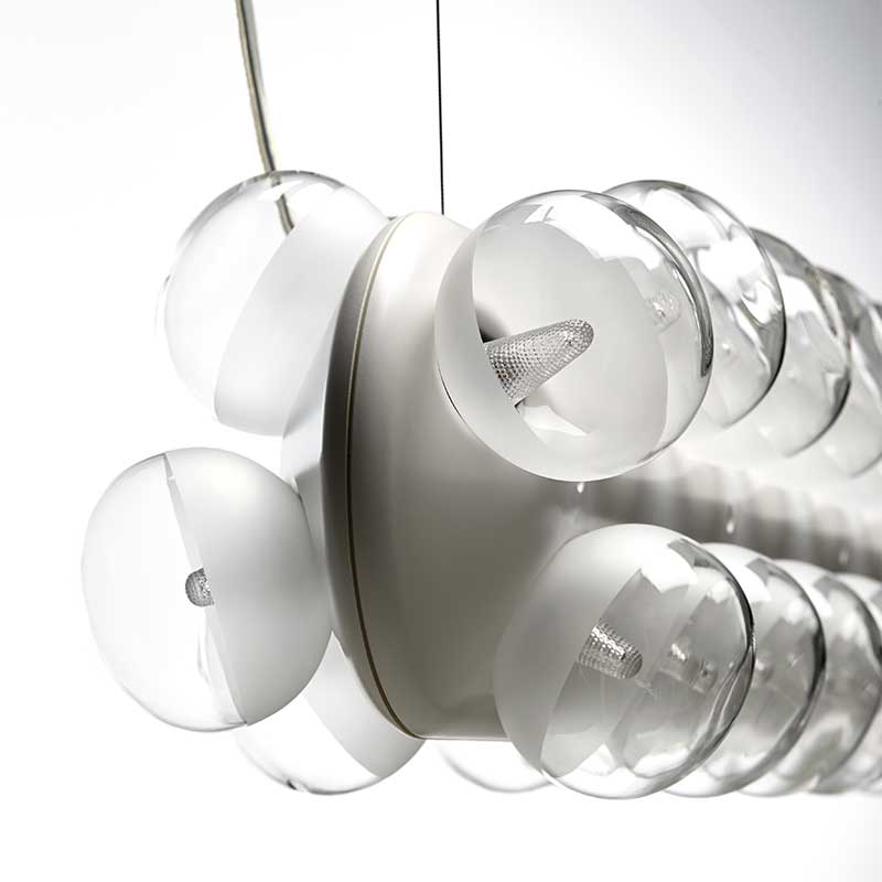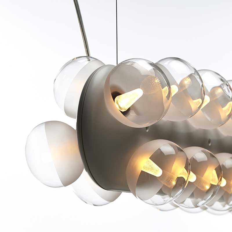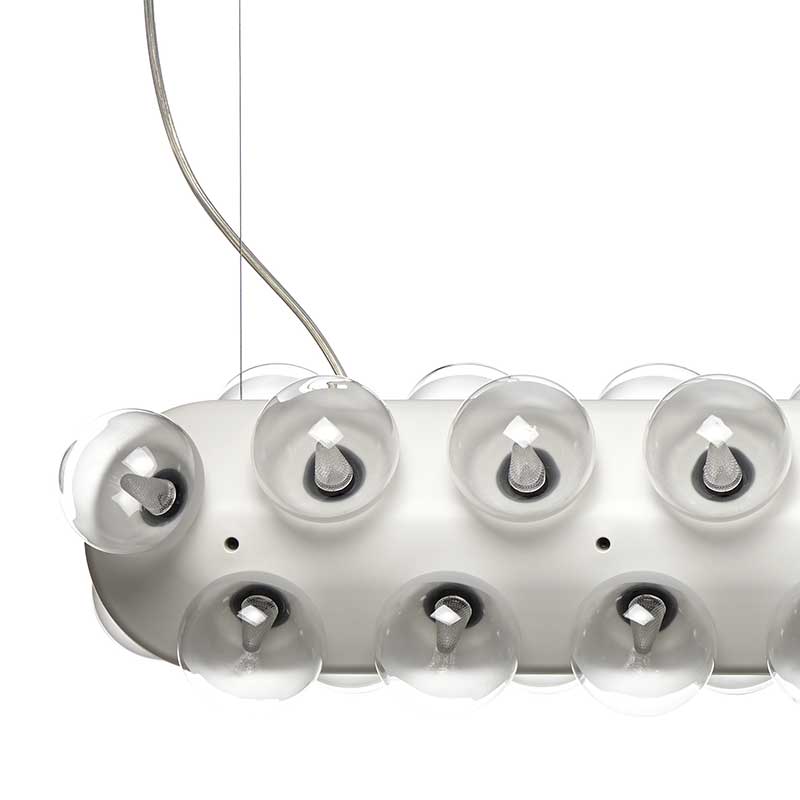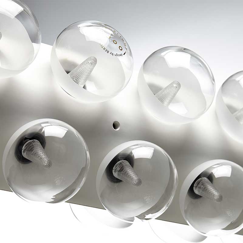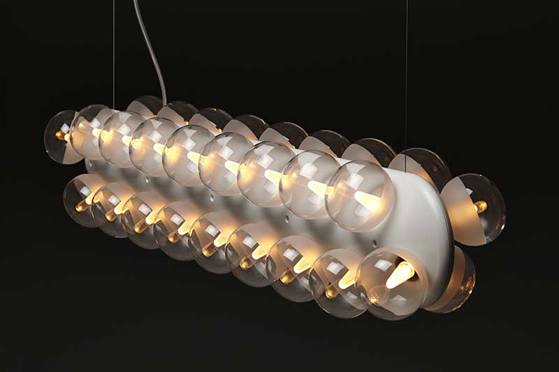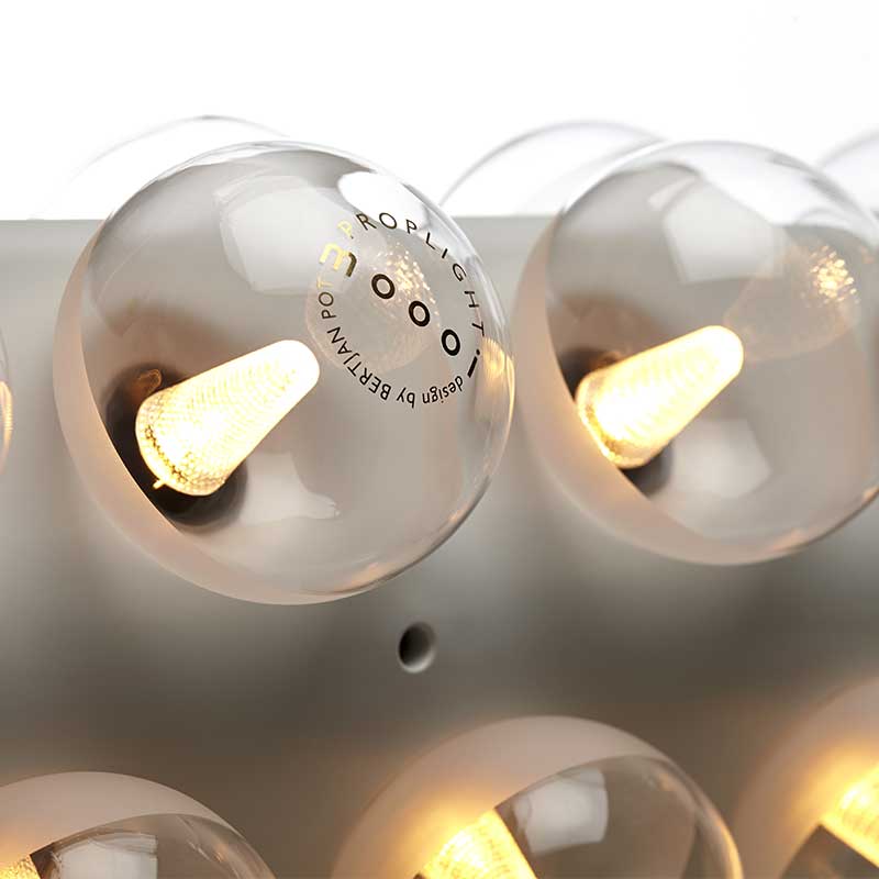 電球以外の要素をシンプルにすることで、たくさん並んだ電球を強調したデザインになっています。