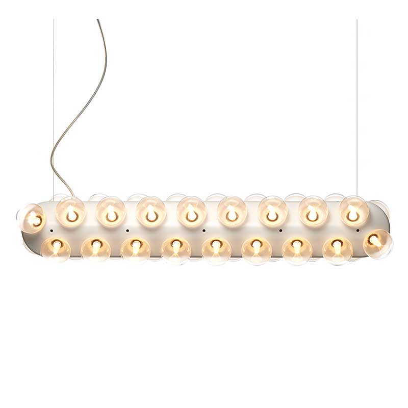 光源をガラスのバルブで包み、昔ながらの電球のフォルムをデザインに取り入れた照明。