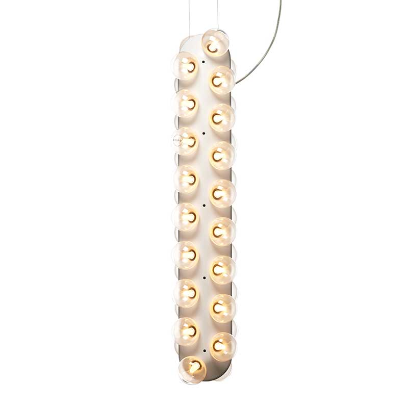 電球以外の要素をシンプルにすることで、たくさん並んだ電球を強調したデザインになっています。