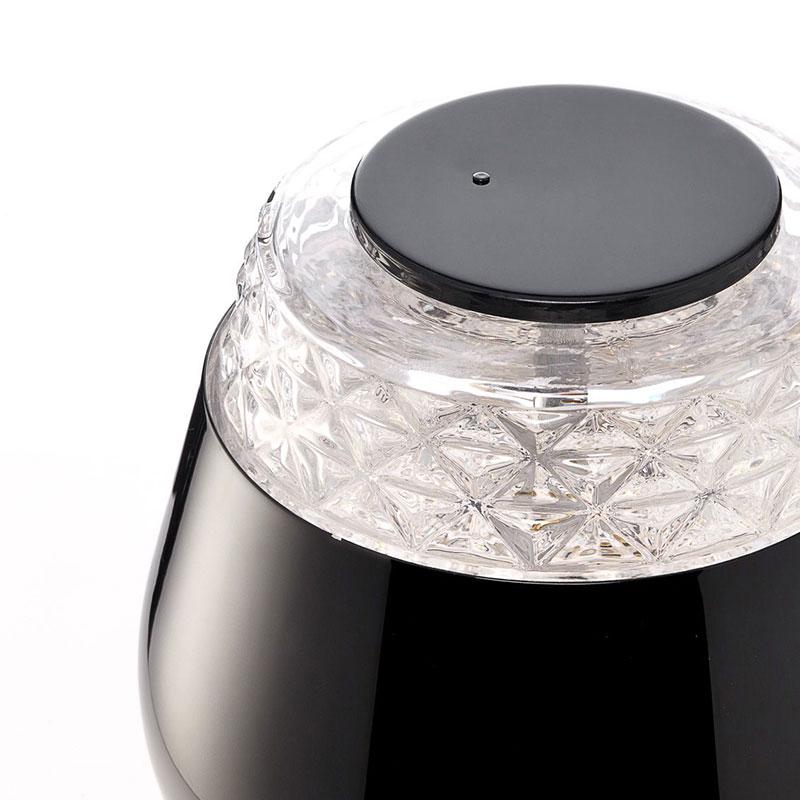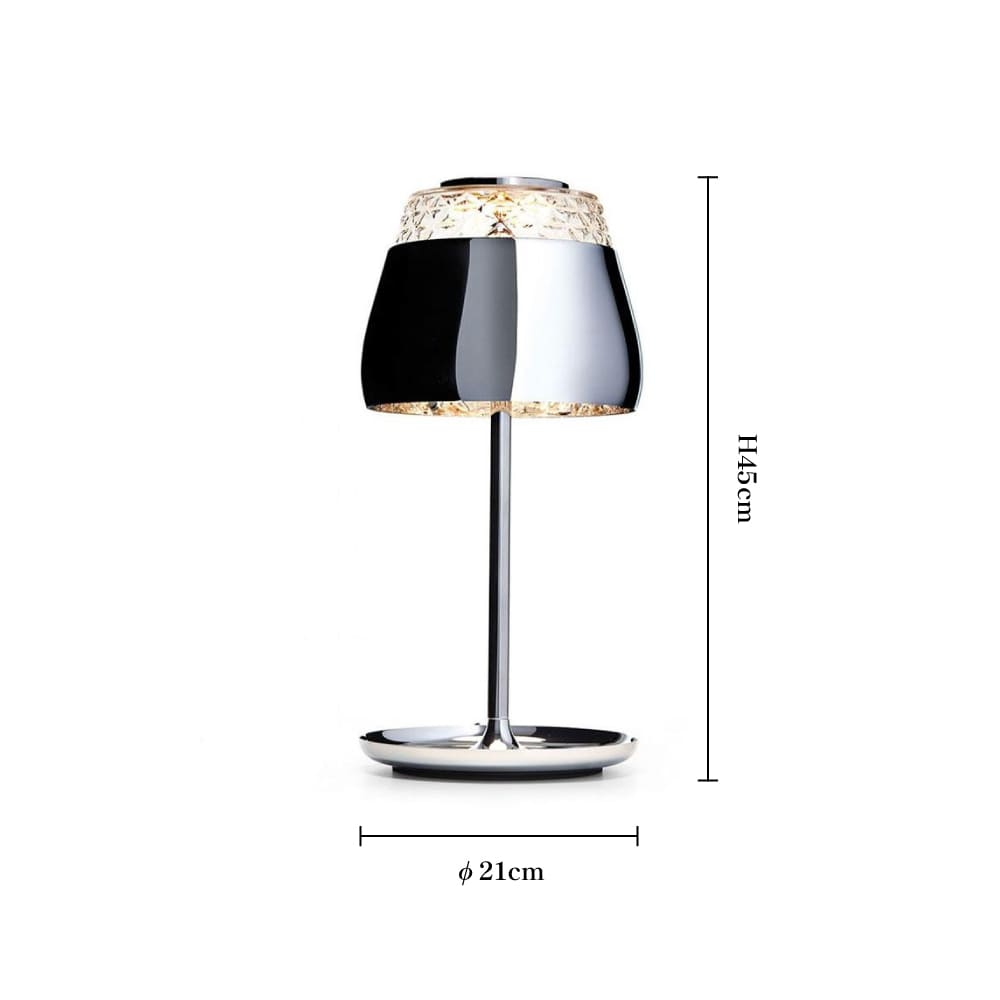 クリスタルガラスと金属の異素材を組み合わせて構成されたテーブルランプ