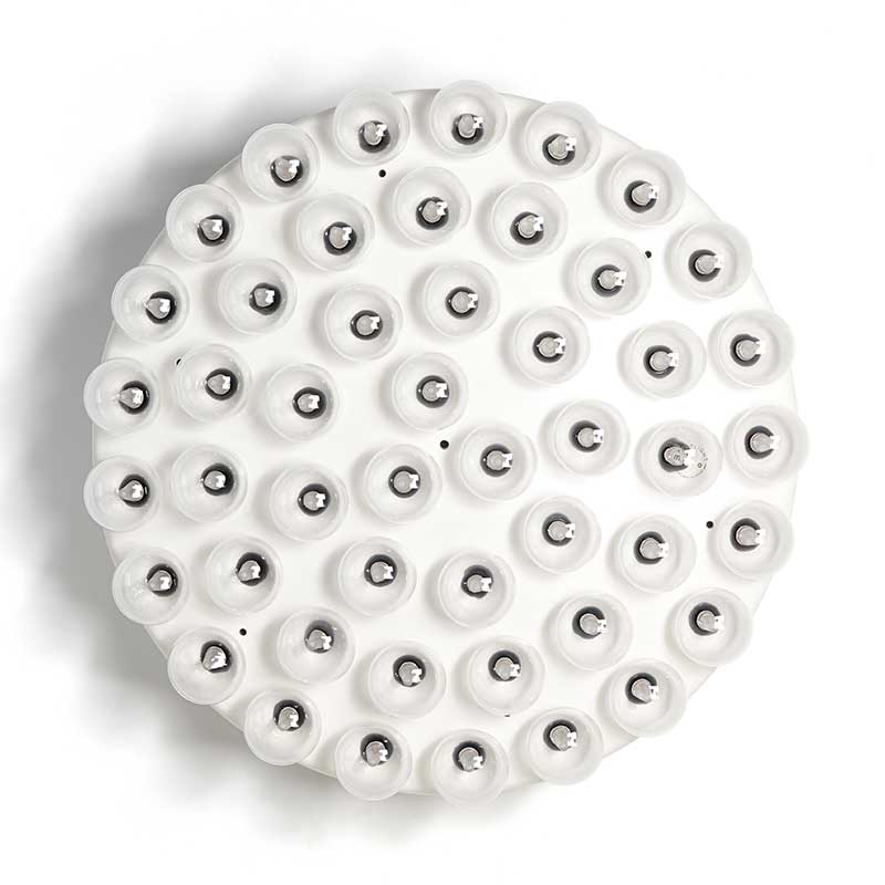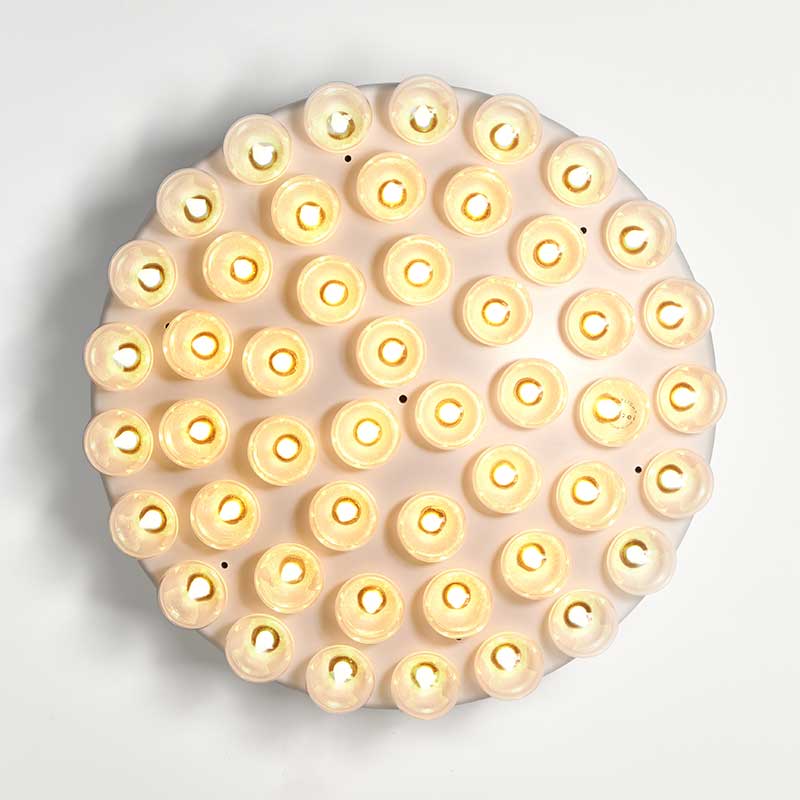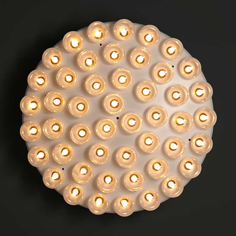 電球以外の要素をシンプルにすることで、たくさん並んだ電球を強調したデザインになっています。