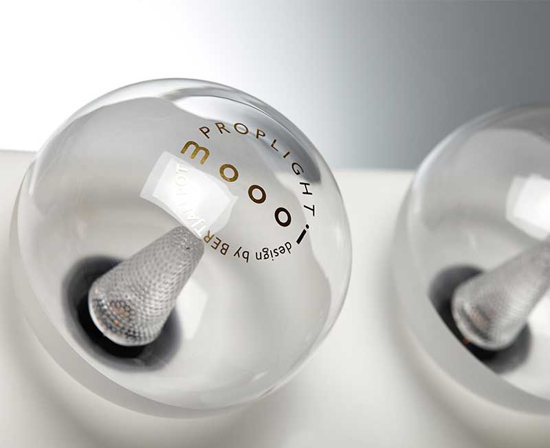 光源をガラスのバルブで包み、昔ながらの電球のフォルムをデザインに取り入れた照明。