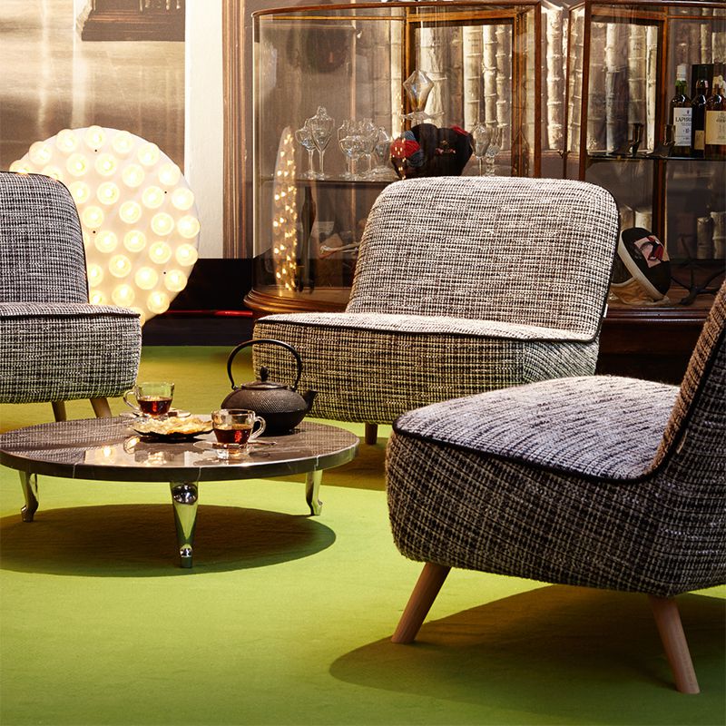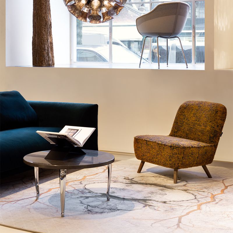 大理石のテーブルトップに、華奢なヒール脚。エレガントでありながらもどこかにユーモアの要素を取り入れる。モーイならではのエスプリの効いたテーブルです。
