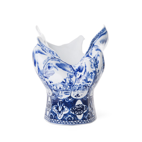 ブローアウエイべースは、オランダの伝統的陶器が一瞬で吹き飛ばされて変形するさまをカタチにし、伝統工芸にあらたな風を吹き込む作品。クラッシックアートとモダンデザインが融合したハンドメイド作品です。
