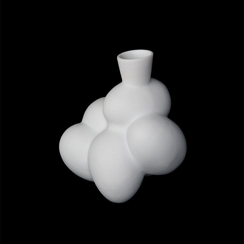 エッグベースは、ラバーにゆで卵を詰めて成形するという意外な製法で制作されたフラワーベース。マルセル・ワンダースによる作品です。