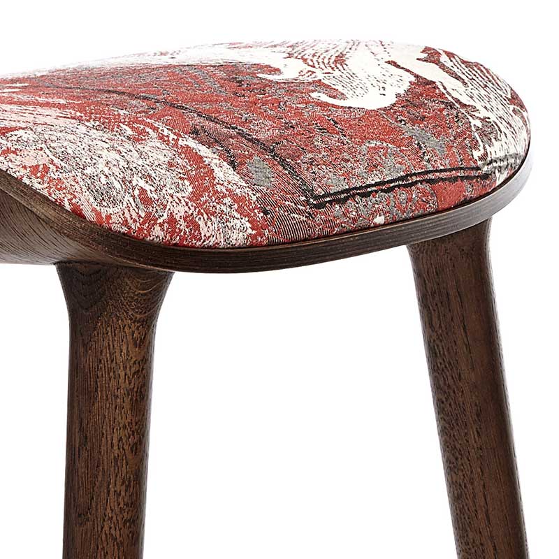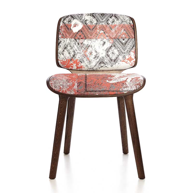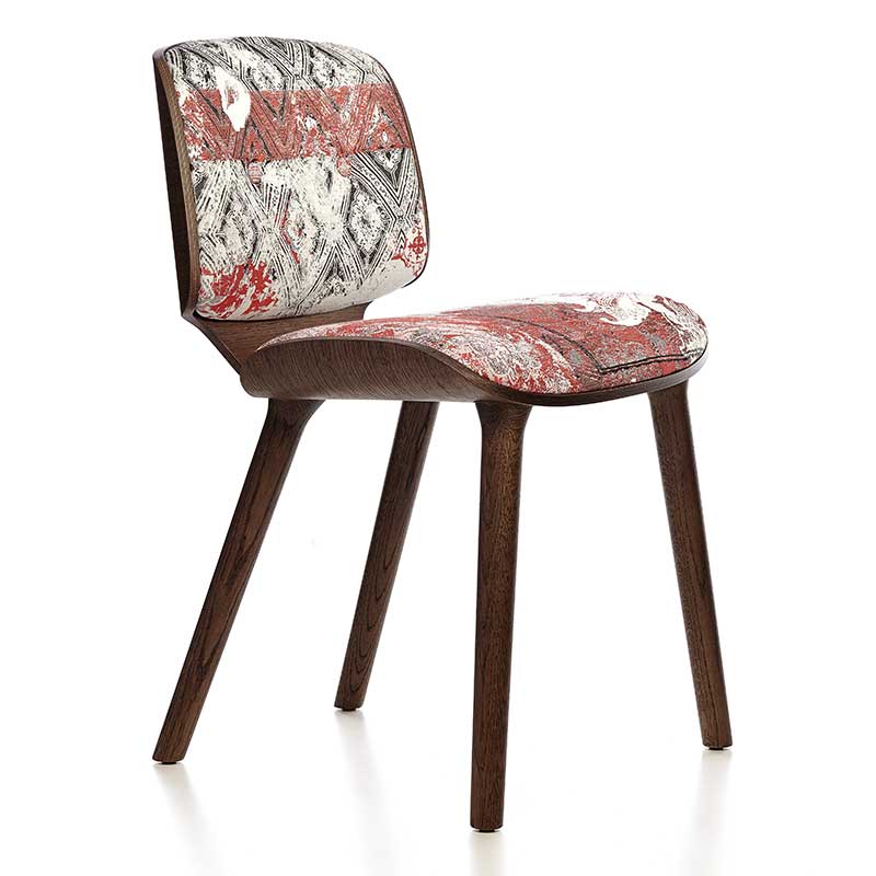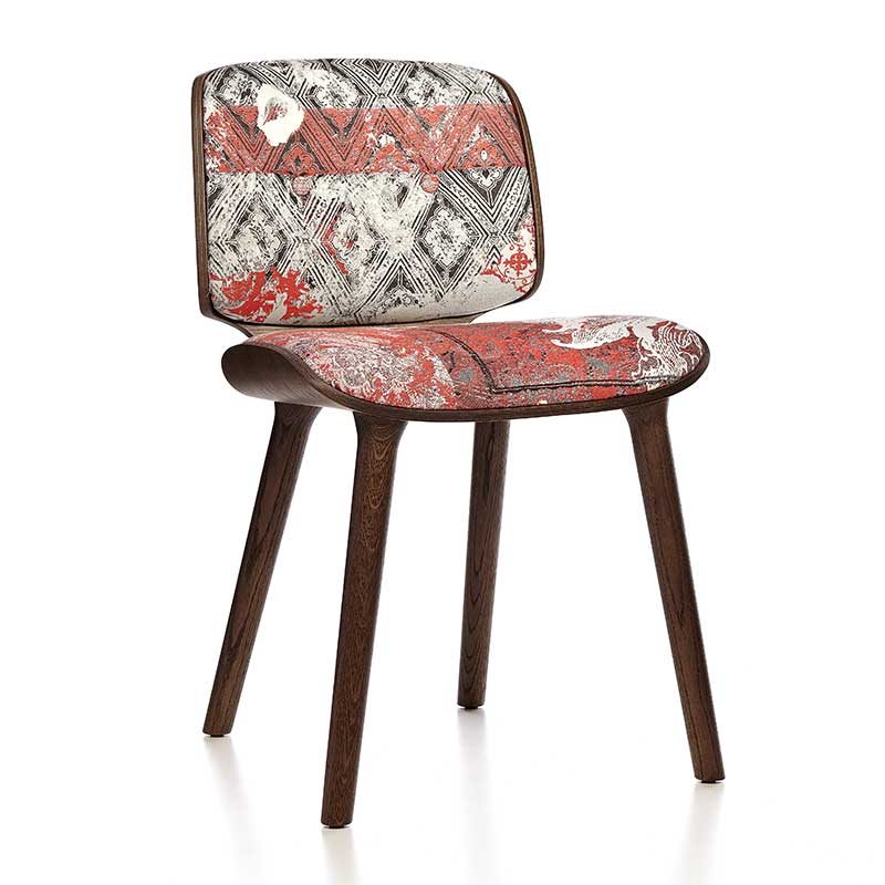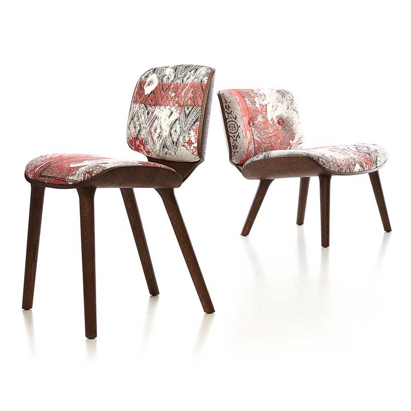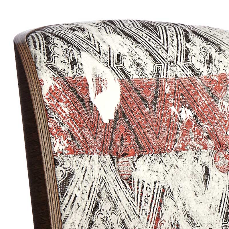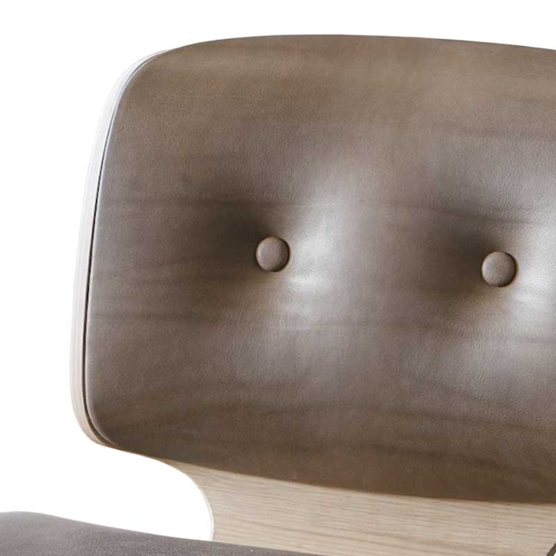 座面と背もたれは同じ形状で、オーク材のプライウッドによるフレーム構造です。シェル状に左右がラウンドし、包み込むようなデザインは二枚貝を連想させます。座ってみれば、たちまち自分がアコヤ貝に守られ育つ、美しい真珠になった気分になれるかも。