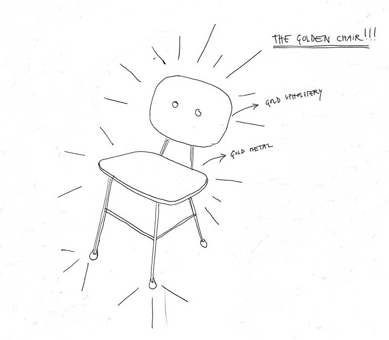 スクールチェアが、魔法によって黄金の蜜の色に変身