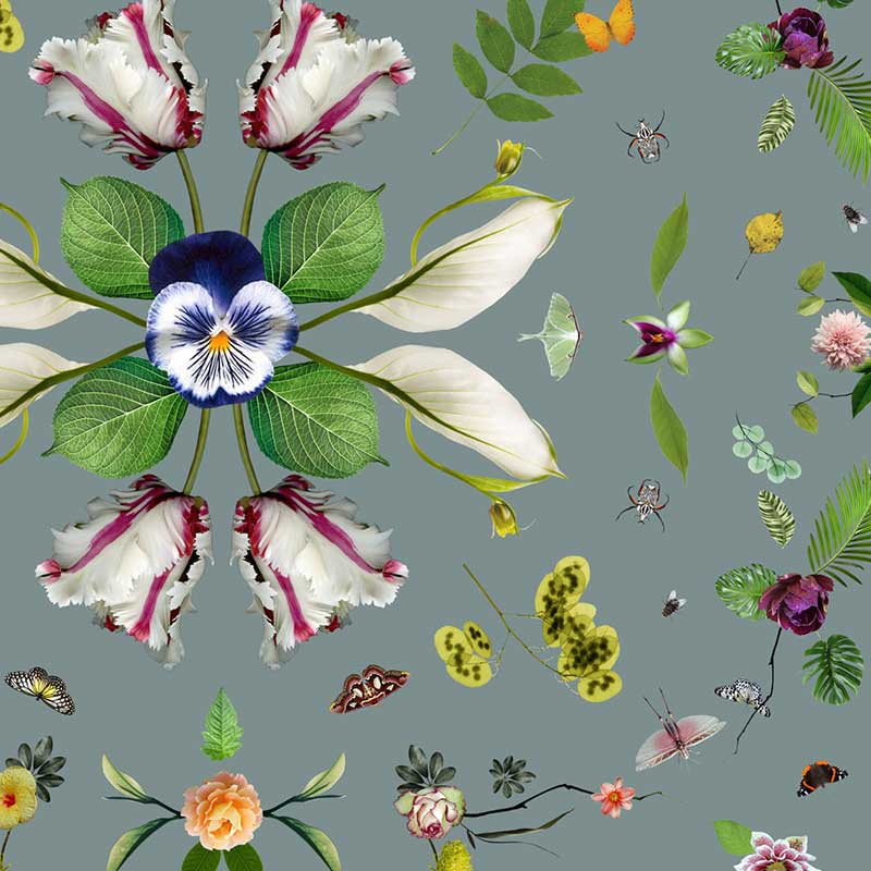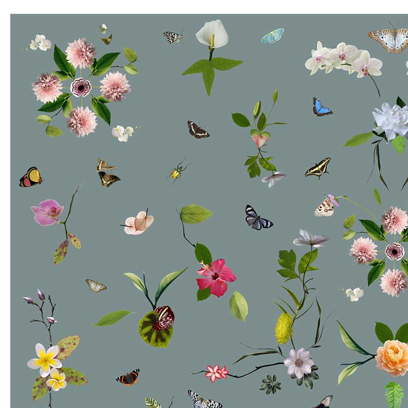 ガーデンオブエデン(エデンの庭)は旧約聖書に登場する理想郷の名です。 蜜を求めて花から花へと戯れる蝶、鳥、昆虫たちが精密に描かれています。 全体を覆った繊細な網は、不均一でところどころ広がったり欠けたりと揺らぎを表現しています。