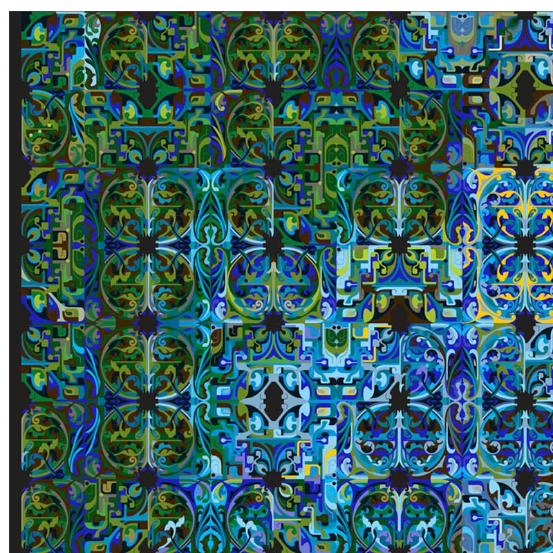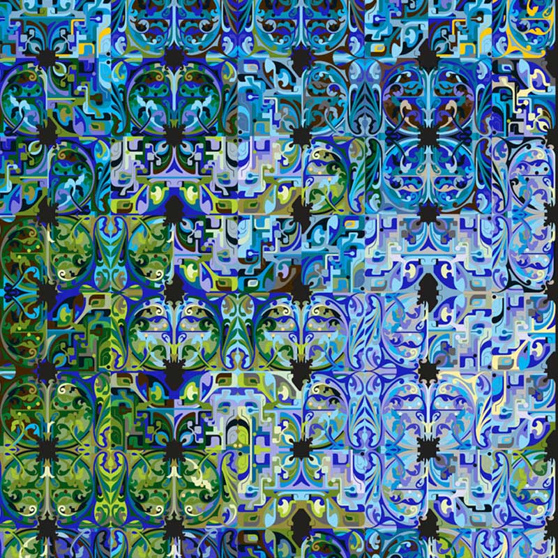エコアライアンスには、時間、家族、世代を守るもののコンセプトに触発され、緑と青の海に浸された柔らかい抱擁でお互いを見つける2つの可変反復パターンが含まれています。