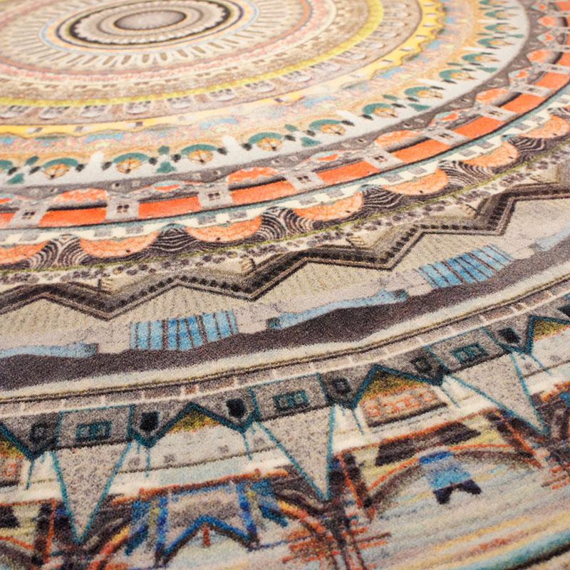デザインを手掛けたニール・ピーターソンは世界中を旅し、最も印象に残った5つの都市を選んでパーソナルな曼荼羅として作品化しました。遠くで見た時のサークル模様と、近くで見た時の都市の風景の2面性を楽しむことができます。 それぞれのデザインはmoooiカーペット独自の高精細なパターンとカラーで再現されています。