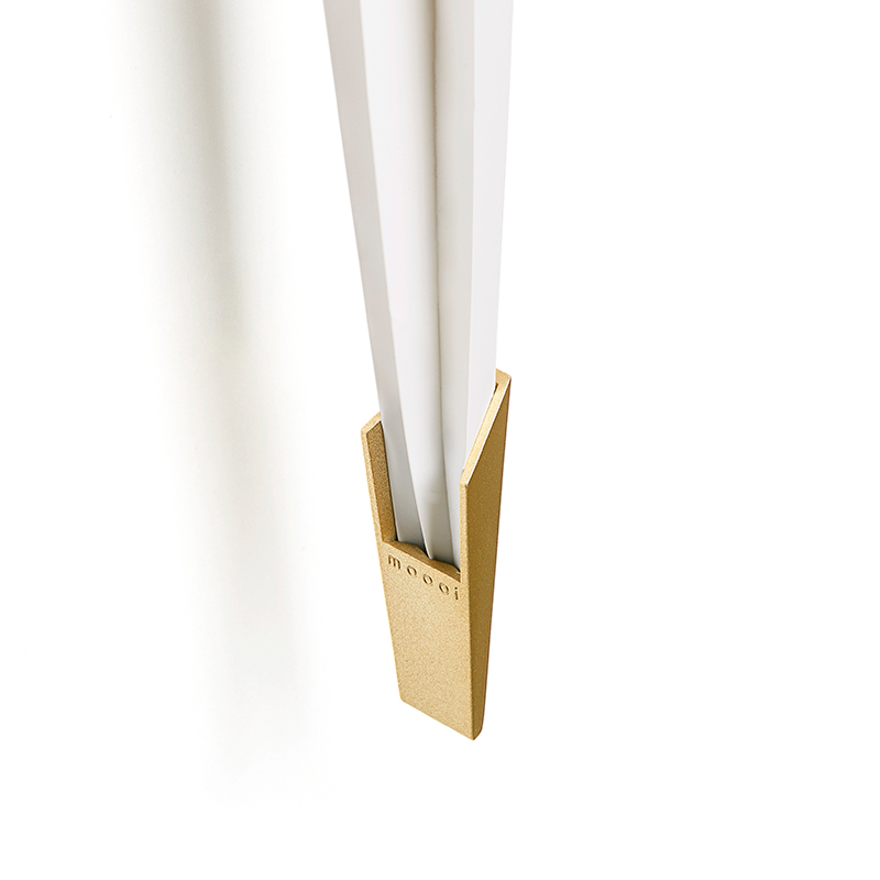 折り紙のように折られた鳥は、くちばしと尾羽根の先端の真鍮色の金属がおもりとなっており、止まり木の上でゆらゆらとバランスを取りながらスイングします。