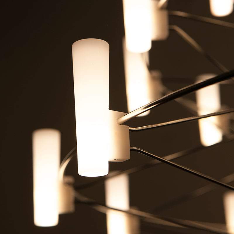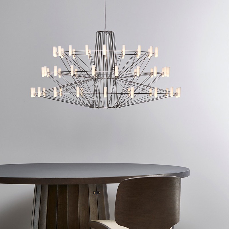 軸を中心に放射状に伸びるアーム、その先端で灯る光源。クラシックなシャンデリアの定義をなぞりつつ、そのすべてが新しく再定義されています。