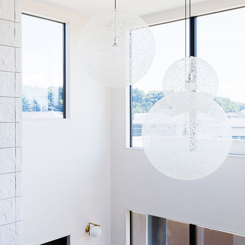 ランダムライトは本体自体がディフューザーの役割をし、中心の光源を拡散させて、その姿はまるで夜空に浮かぶ月のような印象です。
