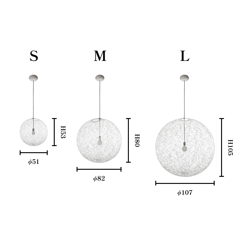 Sサイズでもサイズが大きめですが、視線はランダムに巻かれたグラスファイバーによって、視線は向こう側まで抜けるので、実際の圧迫感は少なく、様々なインテリアに合わせやすいです。