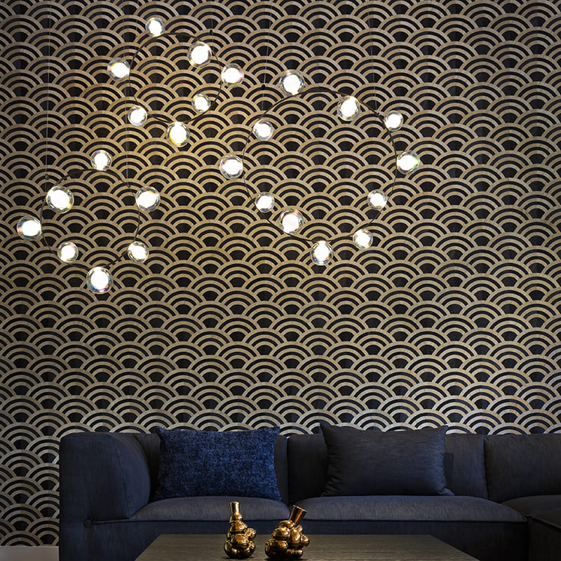 ハブルバブルの多灯吊りは、空間に豊かな表情と奥行きをもたらします。