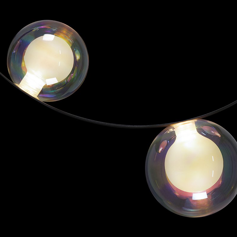 複数のオーナメントが織りなす光のハーモニーは、まるでシャボン玉が宙を軽やかに舞うような幻想的な雰囲気を演出します。