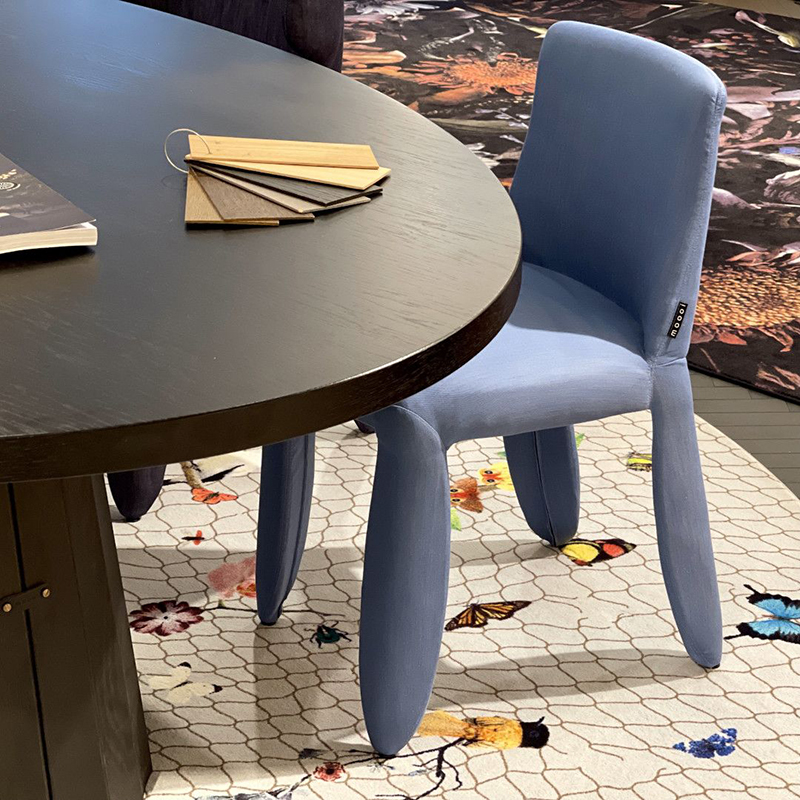 生地はインテリアデザイン向けに特別に製作されています。デニム独特の風合いはそのままに、強度は従来のデニムの約3倍、染色は環境に優しく、色移りや色落ちもしません。