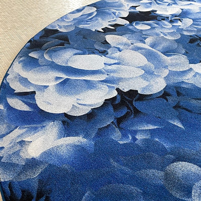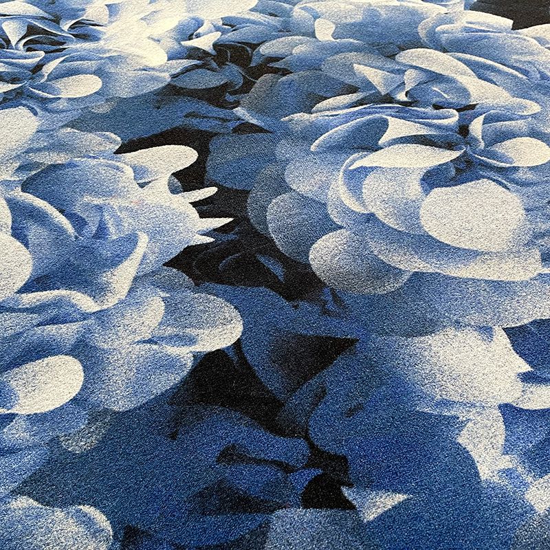 何千枚ものアジサイの花びらで覆われた、やわらかな表面に横たわっているような感覚を、そのままカーペットのデザインに活かしています。
