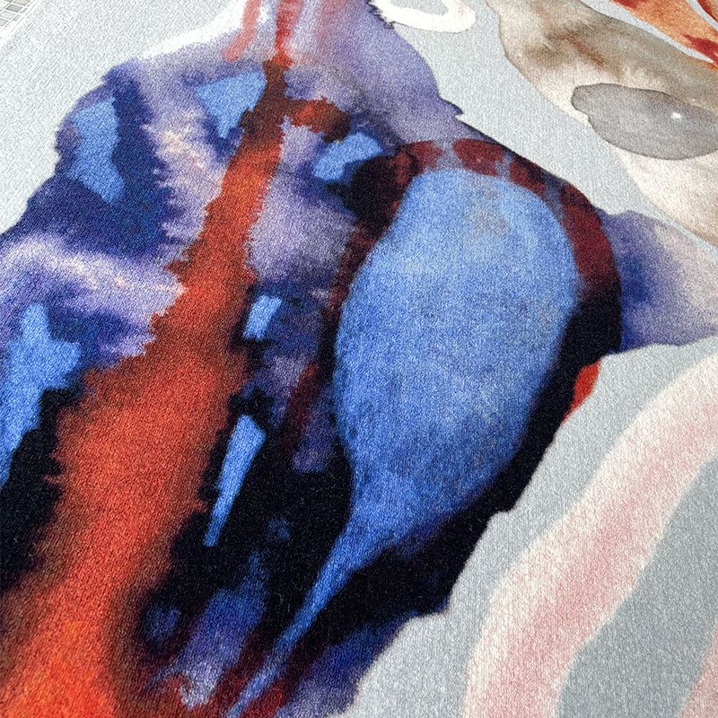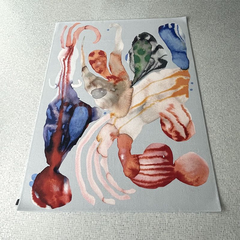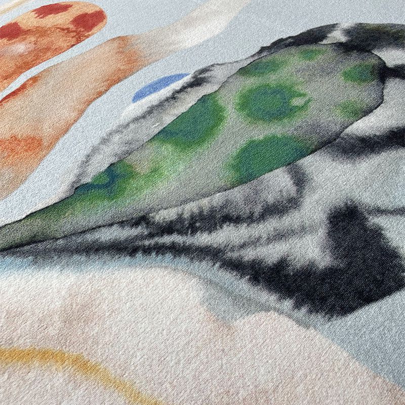 偶発的かつ抽象的なかたちが、魅惑的な.彩画の技法で描かれています。明るく柔らかな色使いは、自然が持っている多様性への賛歌を表しています。