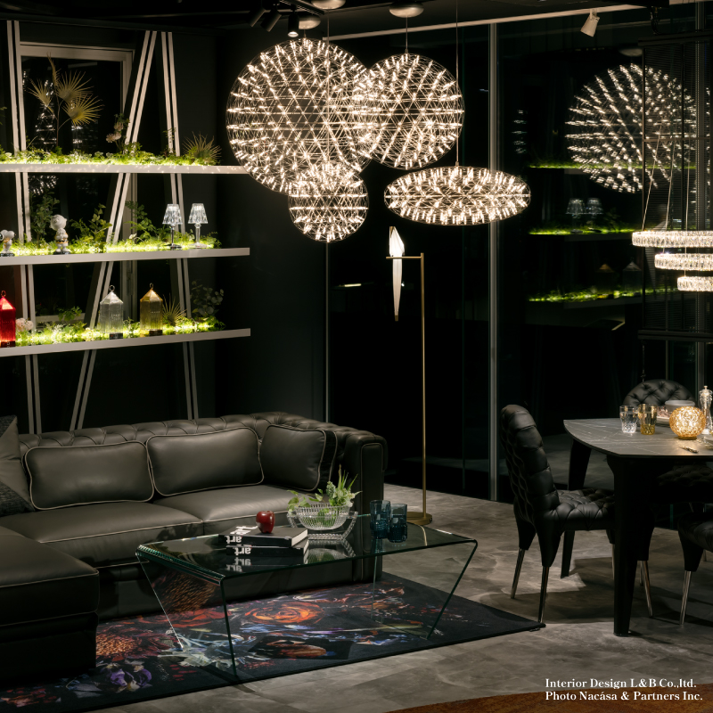 ダイニング、リビング、エントランス、寝室と、空間の用途に合わせた配置プランで、あなたの暮らしに星空を迎え入れることができます。10年後、20年後も色褪せない普遍的な美を持つレイモンド2は、空間の資産価値を高める投資となるでしょう。