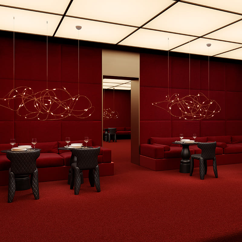 黄昏時は照明が最も美しい時間がはじまる合図です。LEDの幻想的な光の彫刻が消灯時のイメージを一変させ、空間を演出します。