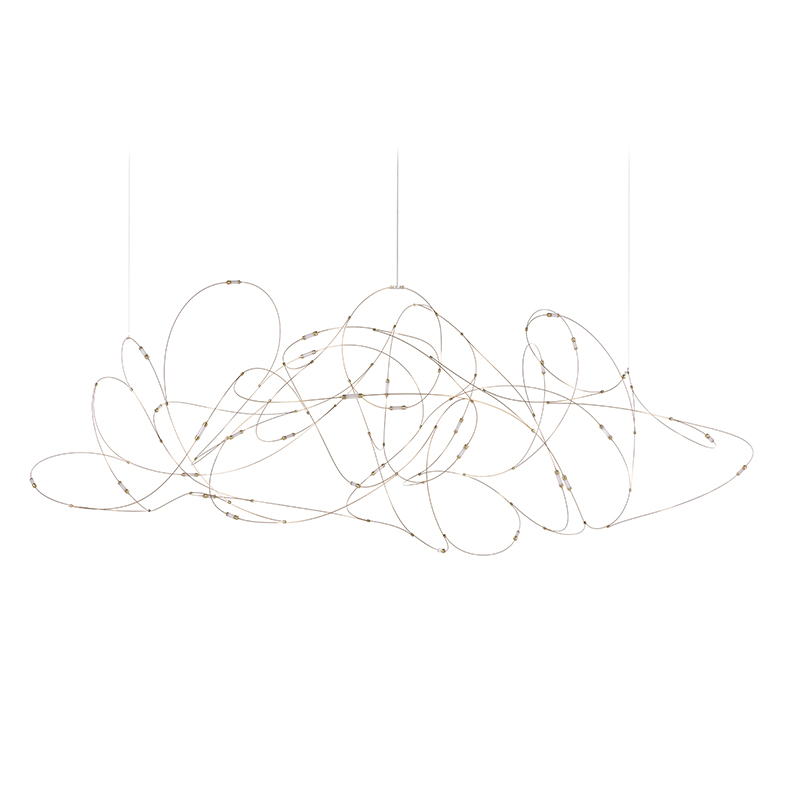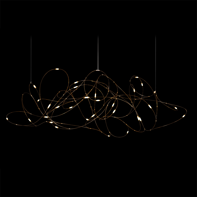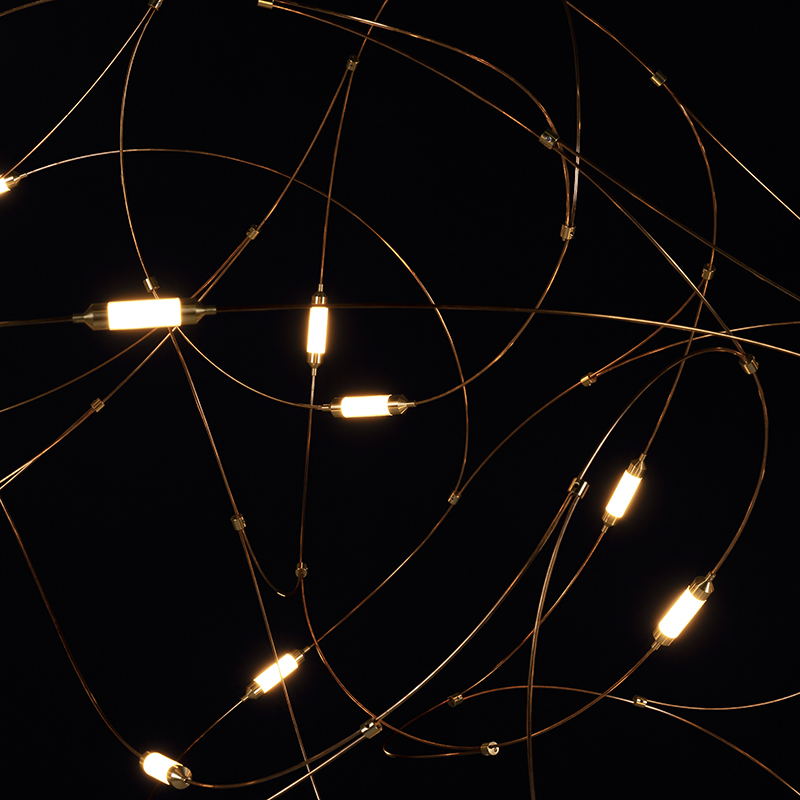 LEDの光源とワイヤーのみで構成され、ワイヤー自身が構造体であり、LEDに電力を供給する役割も担っています。