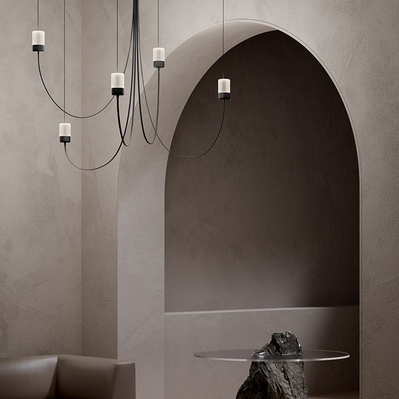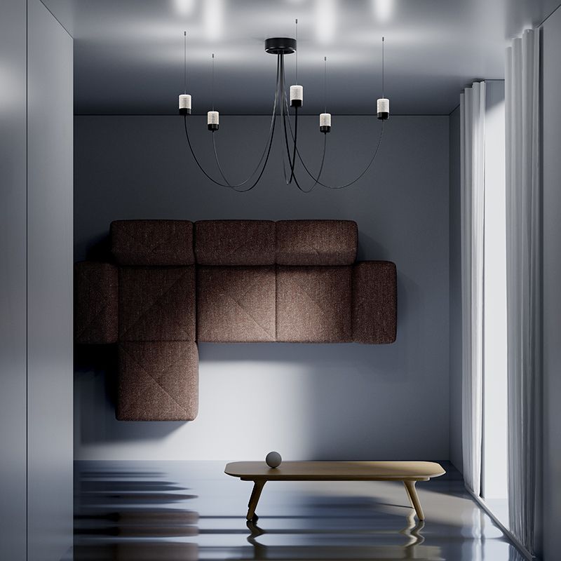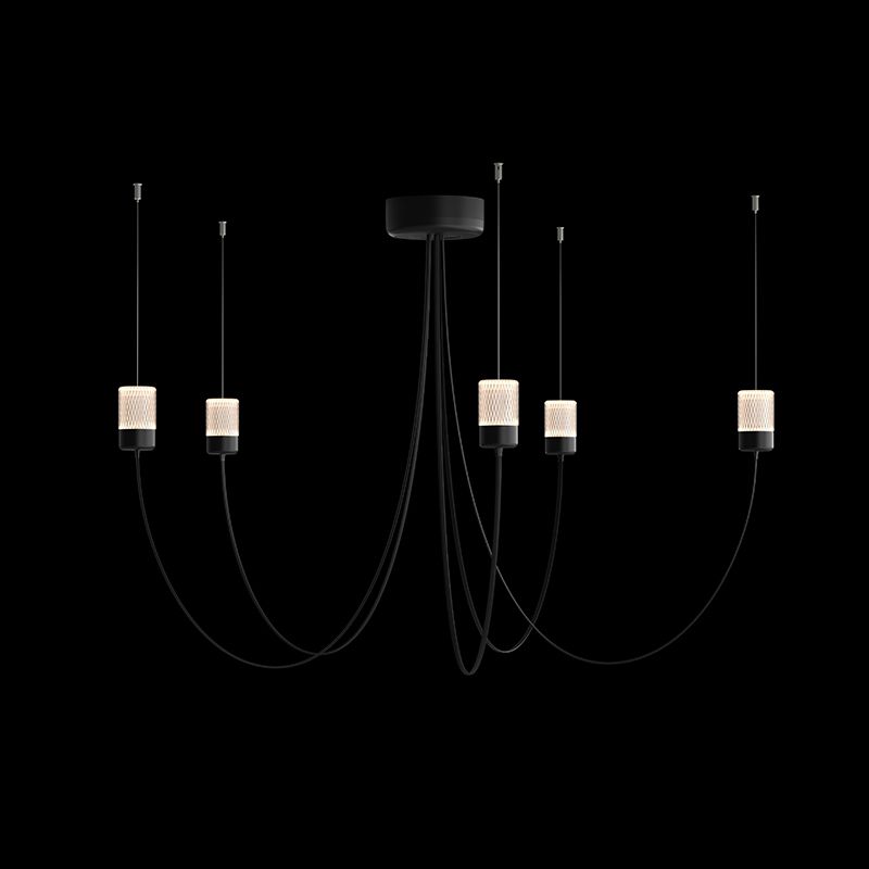 光源へと伸びたアームは、重力によって形作られた自然でエレガントなカーブを生み出します。フレキシブルなアームによって、シャンデリアの直径が決まり、光源をどの位置にレイアウトするのかを決めることができます。