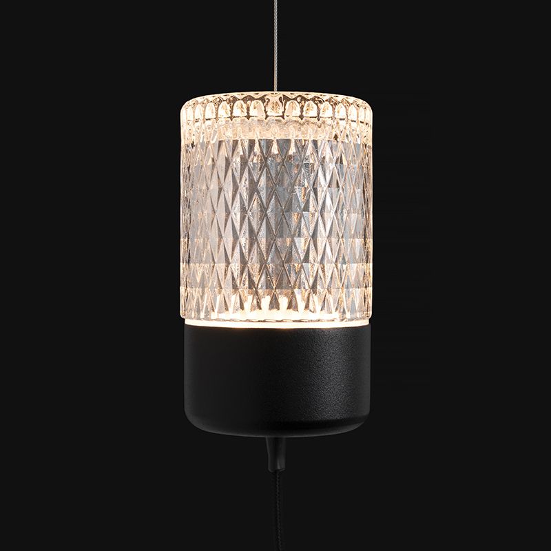光を拡散するオーナメントにはボリュームのある切子ガラスが採用されています。メッシュのように繊細なカットが光を美しく拡散します。最大の特徴でもある、重力が描く自然な放物線を形作るアームコードには、柔軟でリッチな布編みのコードが用いられています。