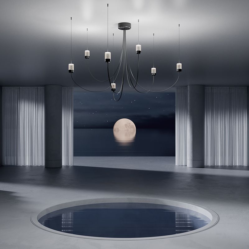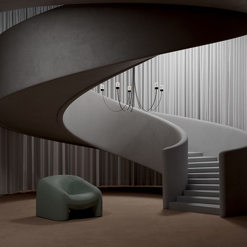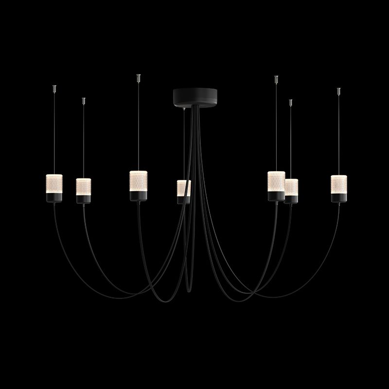 光源へと伸びたアームは、重力によって形作られた自然でエレガントなカーブを生み出します。フレキシブルなアームによって、シャンデリアの直径が決まり、光源をどの位置にレイアウトするのかを決めることができます。