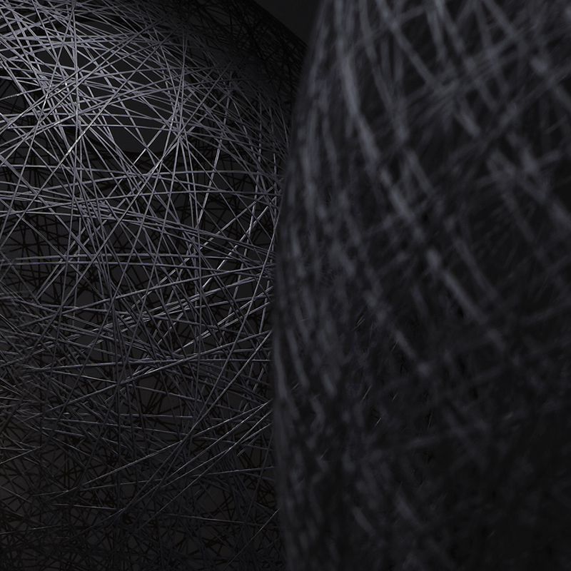 ビーチボールに柔らかくしたグラスファイバーの糸を「ランダム」に巻き、固まったら風船を割って中身を取り出します。