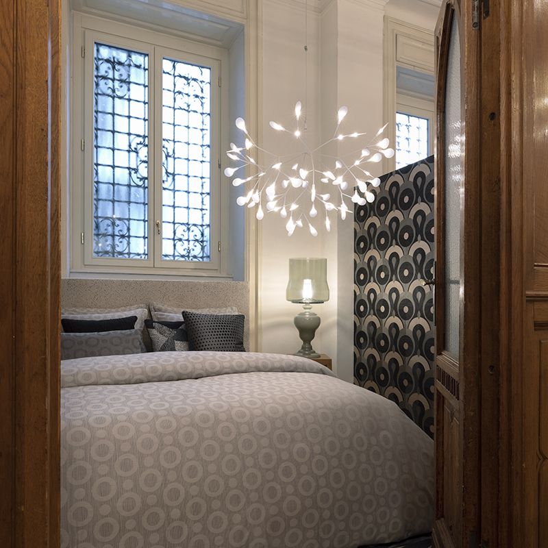 セリ科の多年草「ヘラクレウム」の繊細で可憐な花がデザインモチーフになっています。枝の先端に咲く小さな花弁を、LED光源と丸いディフューザーで再現されています。