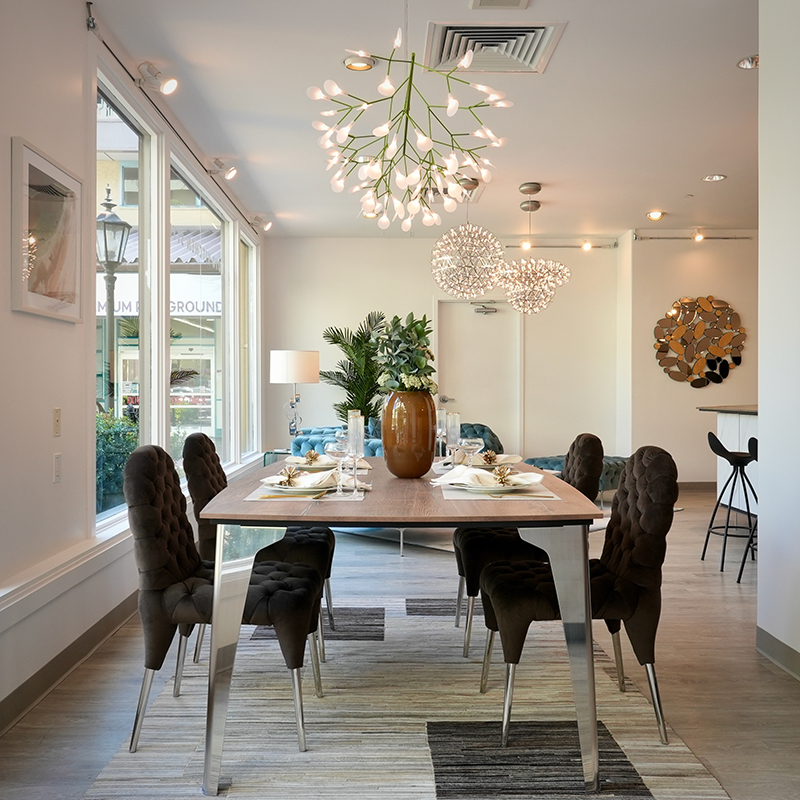 標準サイズまたはスモールサイズを、ダイニングテーブルから60?80cm程度の高さに吊るすのが理想的です。枝の抜け感により圧迫感がなく、食事中の会話も自然に弾みます。北欧スタイルやモダンインテリアとの相性が抜群です。