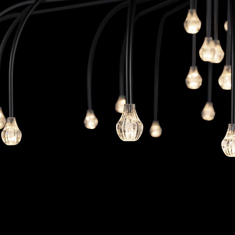 長さの異なる30本のスリムなアームで、さまざまな高さに点在する星の光を再現しています。