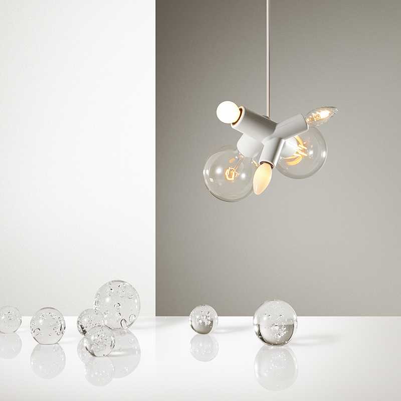 クラスターランプは、異なる形状のランプを組み合わせたユニークなシャンデリア。