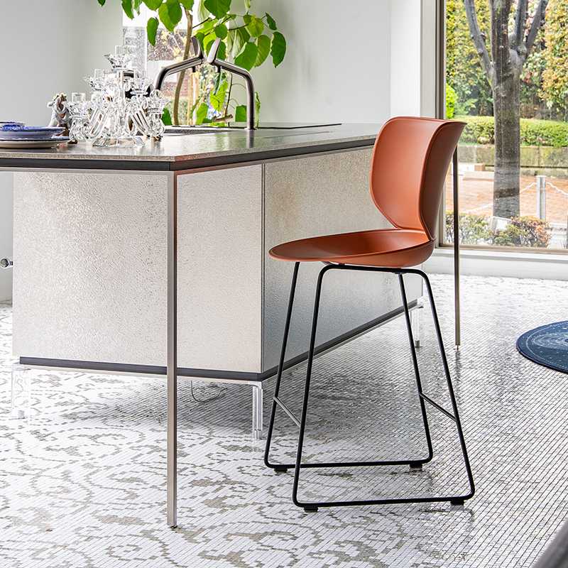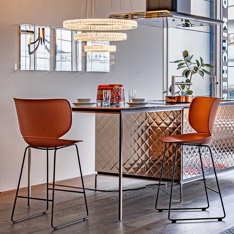 ハナバースツールは、ハナチェアの美しいデザインと快適性を継承しながら、カウンターやバースペースに最適なフォルムへと進化したスツール。