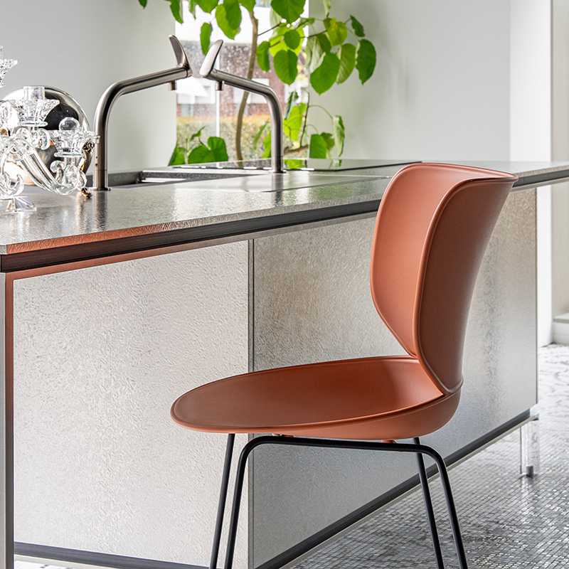 脚部のカラーはブラックとクロームを用意しており、インテリアに調和する理想の一脚を作ることができます。