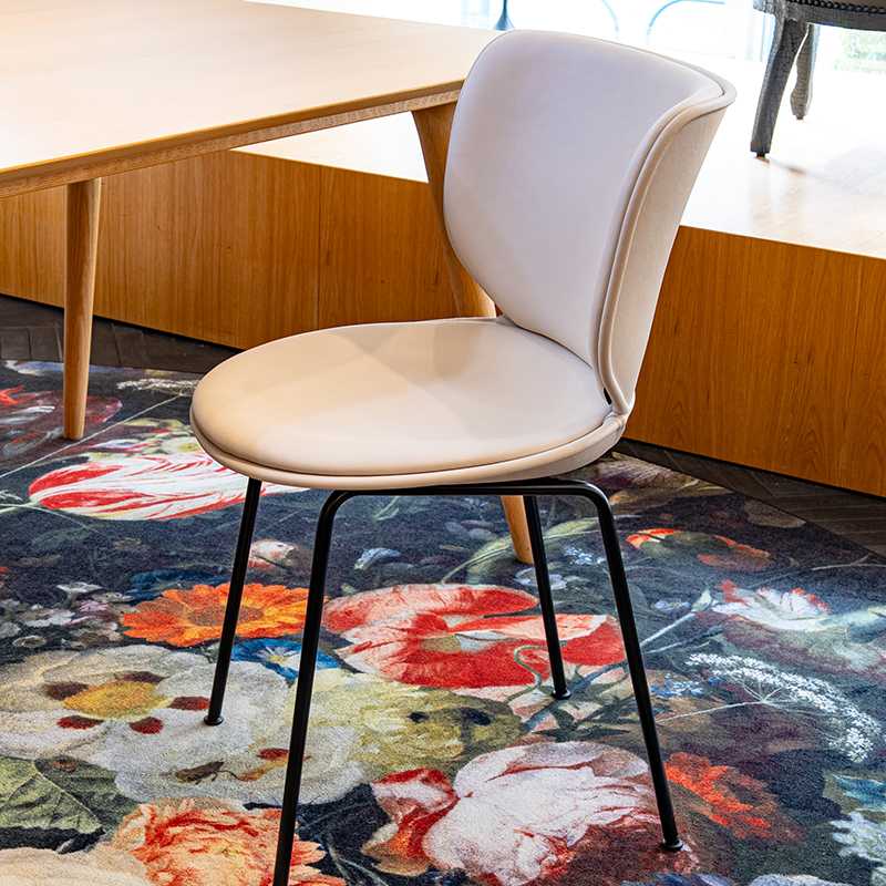 ハナチェアは、美しいデザインと快適性を兼ね備えた、洗練された一脚。モダン、クラシック、ミニマルなど、さまざまなスタイルの空間に調和するデザインです。