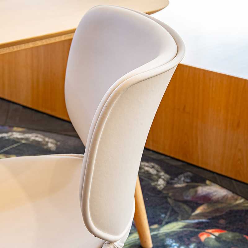 直線的な脚部とのコントラストにより、柔らかく流れるような有機的なフォルムを引き立たせます。