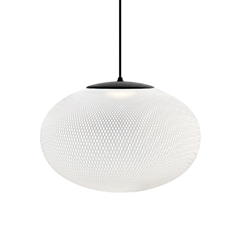 ファイバーグラス製の細い糸が規則的に巻かれており、それ自体が構造でもあり、フォルムでもあり、光を拡散するディフューザーの役割をもっています。