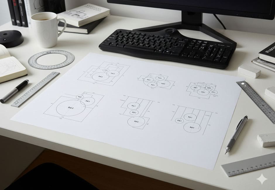 R61×2~3灯、またはR43×3~4灯をテーブル上に配列